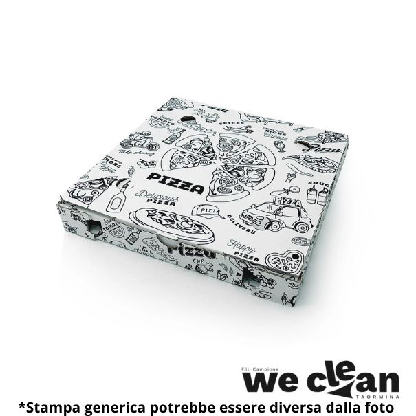Caratteristiche : Scatola pizza in cartone con divertentei stampe.