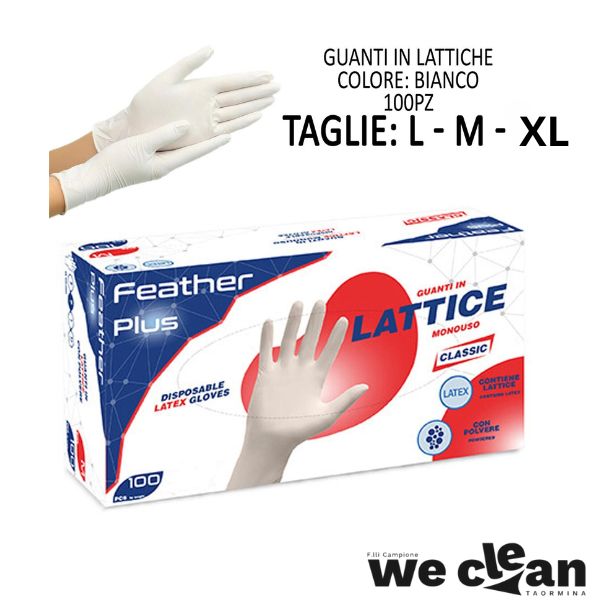 GUANTI IN LATTICE FEATHER PLUS L BIANCO 100PZ