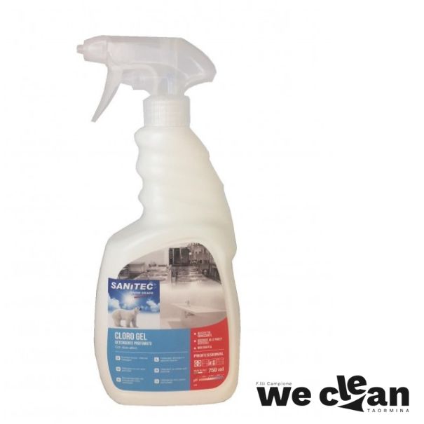 Caratteristiche : Detergente Sanitec Gel Cloro Attivo Spray Detergente gel cloro-attivo profumato ad effetto sgrassante ed igienizzante. Il prodotto in gel aderisce alle pareti verticali pulendo a fondo senza graffiare. Idoneo ai piani di lavoro H.a.c.c.p Ideale per pulire ed igienizzare cucina, piani di lavoro, attrezzature, lavelli, sanitari, pavimenti. Modalità d’uso: spruzzare il prodotto sulla superficie da trattare, strofinare con un panno umido pulito e risciacquare abbondantemente con acqua. Prodotto pronto all’uso. Bottiglia da 750 ml